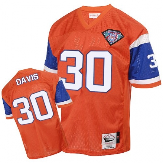 Feel like part of your favorite team by wearing this NFL® Mitchell And Ness Denver Broncos #30 Terrell Davis Orange Authentic Throwback NFL Jersey, made of thick, high-quality Pro-Brite fabric for a genuine gridiron look. The players number which 100% stitched is displayed in tackle twill on the chest, back and sleeves, along with the team name on the front. The players name which 100% stitched is displayed on a sewn-down nameplate at the back. 100% Pro-Brite nylon and 100% Pro-Brite polyester for body, 100% lycratalic spandex dazzle for Side Panels/Collar/Cuffs, NFL® Equipment patch sewn on the bottom of the front collar or fabric insert, NFL® Equipment jock tag with numeric sizing is applied to the lower left bottom of the jersey, Officially licensed.