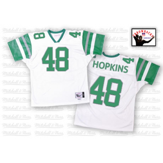 Feel like part of your favorite team by wearing this NFL® Mitchell And Ness Philadelphia Eagles #48 Wes Hopkins Authentic Jersey White Authentic Throwback NFL Jersey, made of thick, high-quality Pro-Brite fabric for a genuine gridiron look. The players number which 100% stitched is displayed in tackle twill on the chest, back and sleeves, along with the team name on the front. The players name which 100% stitched is displayed on a sewn-down nameplate at the back. 100% Pro-Brite nylon and 100% Pro-Brite polyester for body, 100% lycratalic spandex dazzle for Side Panels/Collar/Cuffs, NFL® Equipment patch sewn on the bottom of the front collar or fabric insert, NFL® Equipment jock tag with numeric sizing is applied to the lower left bottom of the jersey, Reebok® logo embroidered on each sleeve, Officially licensed.