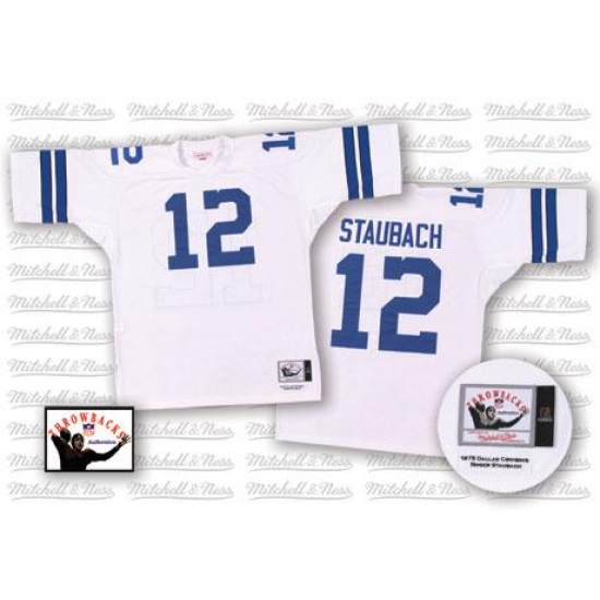 Mitchell and Ness Dallas Cowboys #12 Roger Staubach Authentic White Throwback NFL Jersey