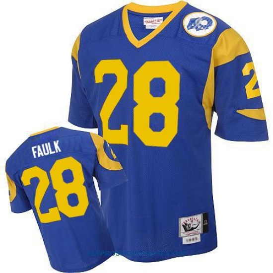 Feel like part of your favorite team by wearing this NFL® Mitchell and Ness Los Angeles Rams #28 Marshall Faulk Authentic Blue Throwback NFL Jersey, made of thick, high-quality Pro-Brite fabric for a genuine gridiron look. The players number which 100% stitched is displayed in tackle twill on the chest, back and sleeves, along with the team name on the front. The players name which 100% stitched is displayed on a sewn-down nameplate at the back. 100% Pro-Brite nylon and 100% Pro-Brite polyester for body, 100% lycratalic spandex dazzle for Side Panels/Collar/Cuffs, NFL® Equipment patch sewn on the bottom of the front collar or fabric insert, NFL® Equipment jock tag with numeric sizing is applied to the lower left bottom of the jersey, Officially licensed