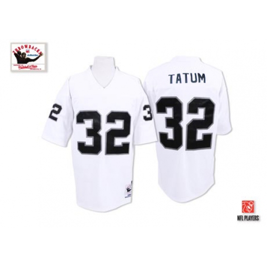 Feel like part of your favorite team by wearing this NFL® Mitchell and Ness Oakland Raiders #32 Jack Tatum White Authentic Throwback NFL Jersey, made of thick, high-quality Pro-Brite fabric for a genuine gridiron look. The players number which 100% stitched is displayed in tackle twill on the chest, back and sleeves, along with the team name on the front. The players name which 100% stitched is displayed on a sewn-down nameplate at the back. 100% Pro-Brite nylon and 100% Pro-Brite polyester for body, 100% lycratalic spandex dazzle for Side Panels/Collar/Cuffs, NFL® Equipment patch sewn on the bottom of the front collar or fabric insert, NFL® Equipment jock tag with numeric sizing is applied to the lower left bottom of the jersey, Officially licensed.