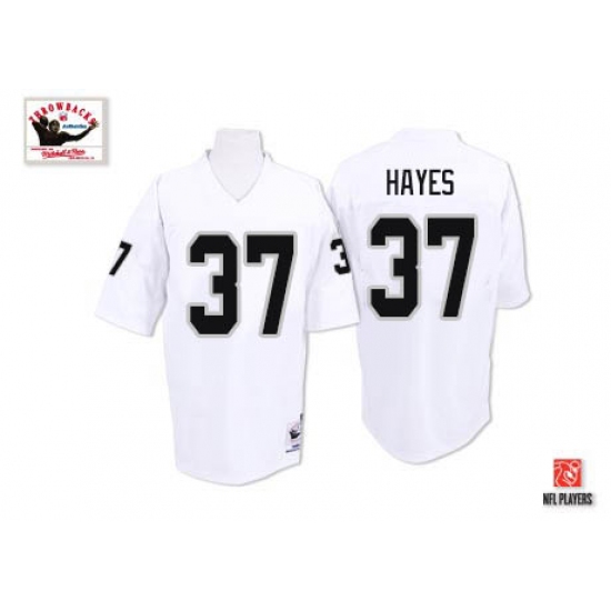 Feel like part of your favorite team by wearing this NFL® Mitchell and Ness Oakland Raiders #37 Lester Hayes White Authentic NFL Throwback Jersey, made of thick, high-quality Pro-Brite fabric for a genuine gridiron look. The players number which 100% stitched is displayed in tackle twill on the chest, back and sleeves, along with the team name on the front. The players name which 100% stitched is displayed on a sewn-down nameplate at the back. 100% Pro-Brite nylon and 100% Pro-Brite polyester for body, 100% lycratalic spandex dazzle for Side Panels/Collar/Cuffs, NFL® Equipment patch sewn on the bottom of the front collar or fabric insert, NFL® Equipment jock tag with numeric sizing is applied to the lower left bottom of the jersey, Officially licensed