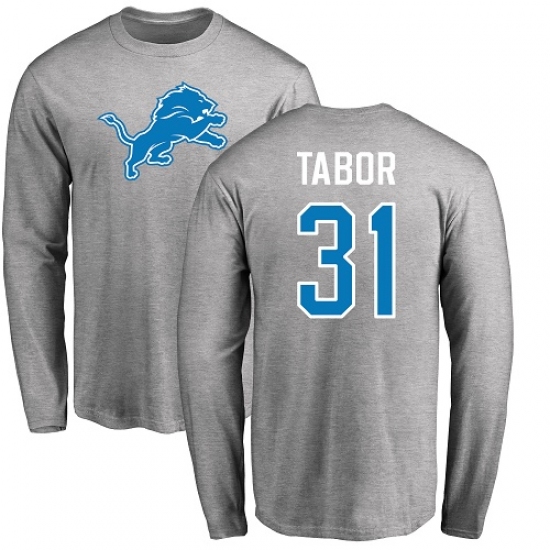 >NFL Nike Detroit Lions #31 Teez Tabor Ash Name & Number Logo Long Sleeve T-Shirt