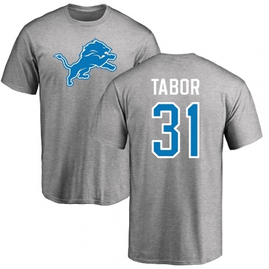 NFL Nike Detroit Lions #31 Teez Tabor Ash Name & Number Logo T-Shirt