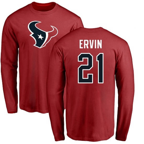 >NFL Nike Houston Texans #21 Tyler Ervin Red Name & Number Logo Long Sleeve T-Shirt