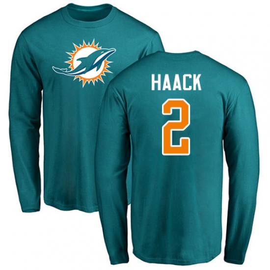 >NFL Nike Miami Dolphins #2 Matt Haack Aqua Green Name & Number Logo Long Sleeve T-Shirt