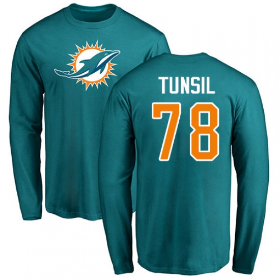 NFL Nike Miami Dolphins #78 Laremy Tunsil Aqua Green Name & Number Logo Long Sleeve T-Shirt