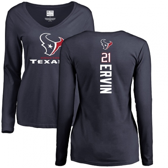 >NFL Women's Nike Houston Texans #21 Tyler Ervin Navy Blue Backer Long Sleeve T-Shirt