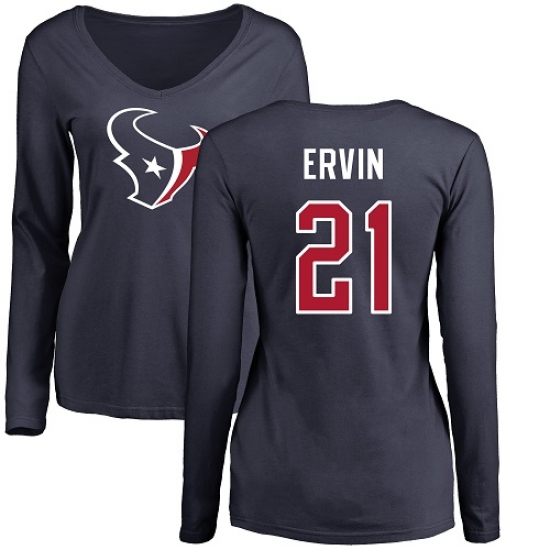 >NFL Women's Nike Houston Texans #21 Tyler Ervin Navy Blue Name & Number Logo Long Sleeve T-Shirt