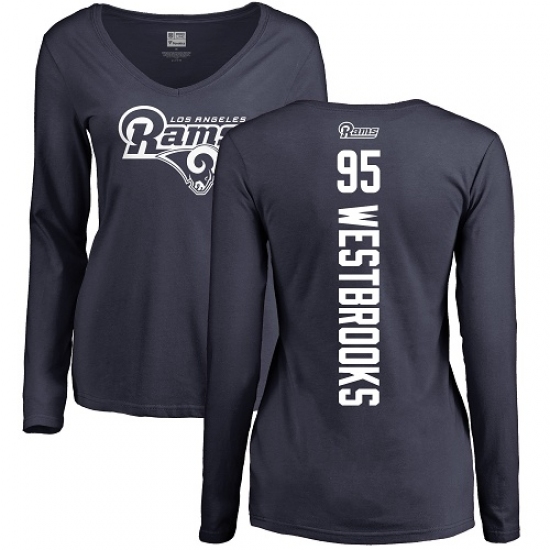 NFL Women's Nike Los Angeles Rams #95 Ethan Westbrooks Navy Blue Backer Slim Fit Long Sleeve T-Shirt