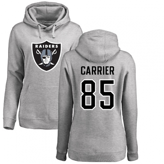 NFL Women's Nike Oakland Raiders #85 Derek Carrier Ash Name & Number Logo Pullover Hoodie