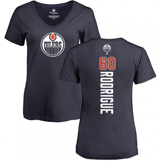 NHL Women's Adidas Edmonton Oilers #60 Olivier Rodrigue Navy Blue Backer Slim Fit V-Neck T-Shirt