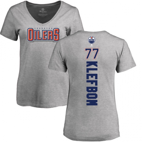 NHL Women's Adidas Edmonton Oilers #77 Oscar Klefbom Ash Backer T-Shirt