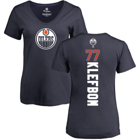 >NHL Women's Adidas Edmonton Oilers #77 Oscar Klefbom Navy Blue Backer Slim Fit V-Neck T-Shirt