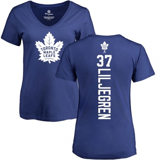 NHL Women's Adidas Toronto Maple Leafs #37 Timothy Liljegren Royal Blue Backer T-Shirt