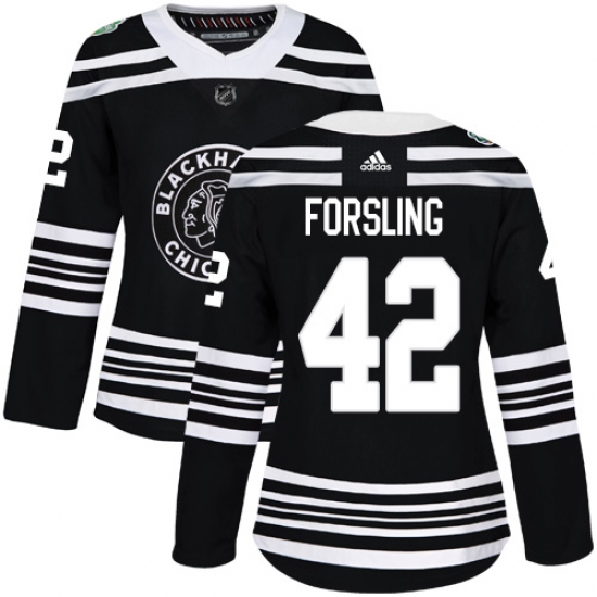 Women's Adidas Chicago Blackhawks #42 Gustav Forsling Authentic Black 2019 Winter Classic NHL Jersey