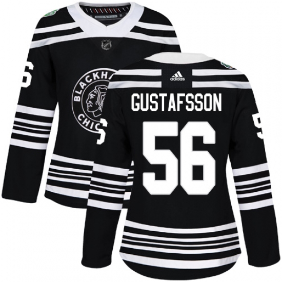 >Women's Adidas Chicago Blackhawks #56 Erik Gustafsson Authentic Black 2019 Winter Classic NHL Jersey