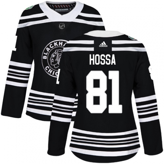 Women's Adidas Chicago Blackhawks #81 Marian Hossa Authentic Black 2019 Winter Classic NHL Jersey