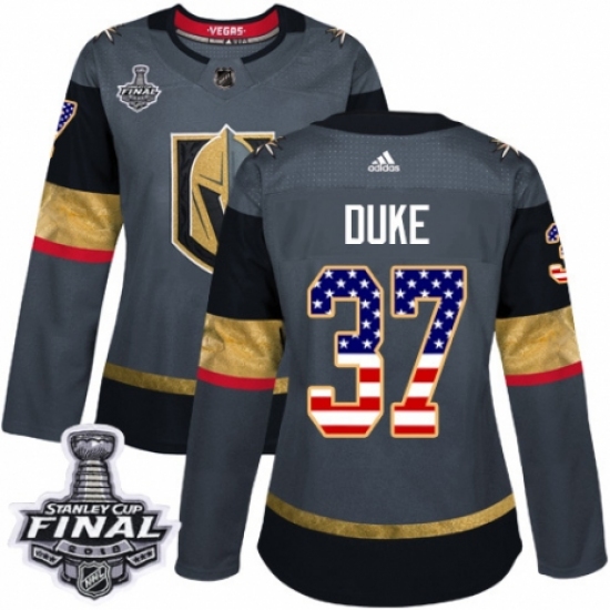 Women's Adidas Vegas Golden Knights #37 Reid Duke Authentic Gray USA Flag Fashion 2018 Stanley Cup Final NHL Jersey