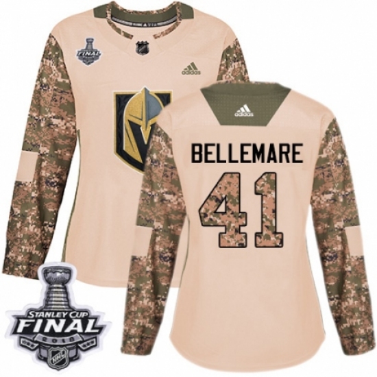 >Women's Adidas Vegas Golden Knights #41 Pierre-Edouard Bellemare Authentic Camo Veterans Day Practice 2018 Stanley Cup Final NHL Jersey