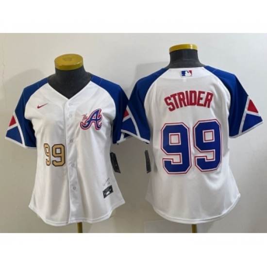 Women's Atlanta Braves #99 Spencer Strider White 2023 City Connect Cool Base Stitched Jersey