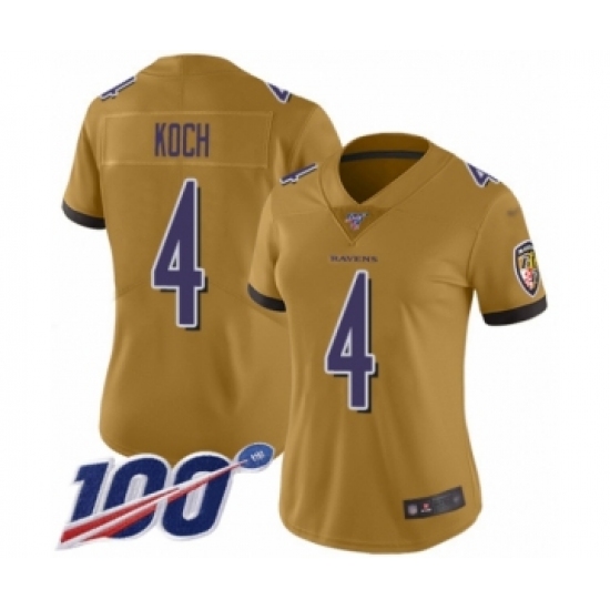 Women's Baltimore Ravens #4 Sam Koch Limited Gold Inverted Legend 100th Season Football Jersey