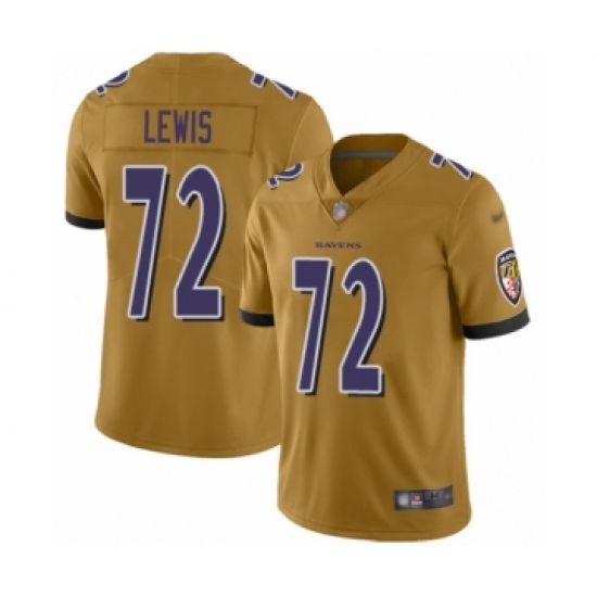 Women's Baltimore Ravens #72 Alex Lewis Limited Gold Inverted Legend Football Jersey