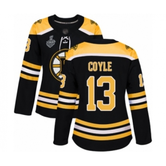 Women's Boston Bruins #13 Charlie Coyle Authentic Black Home 2019 Stanley Cup Final Bound Hockey Jersey