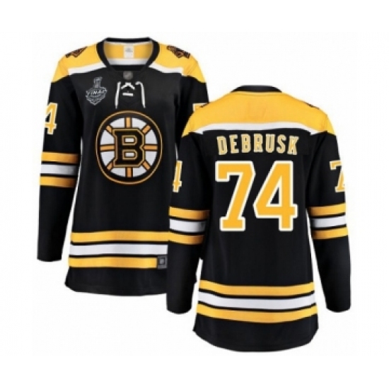 >Women's Boston Bruins #74 Jake DeBrusk Authentic Black Home Fanatics Branded Breakaway 2019 Stanley Cup Final Bound Hockey Jersey