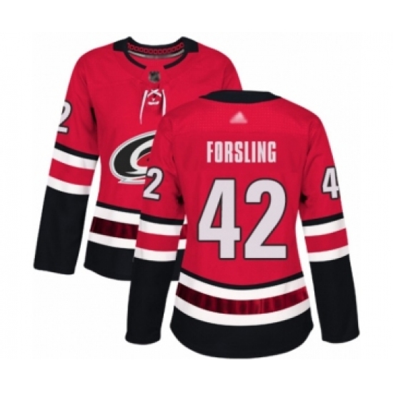 Women's Carolina Hurricanes #42 Gustav Forsling Authentic Red Home Hockey Jersey