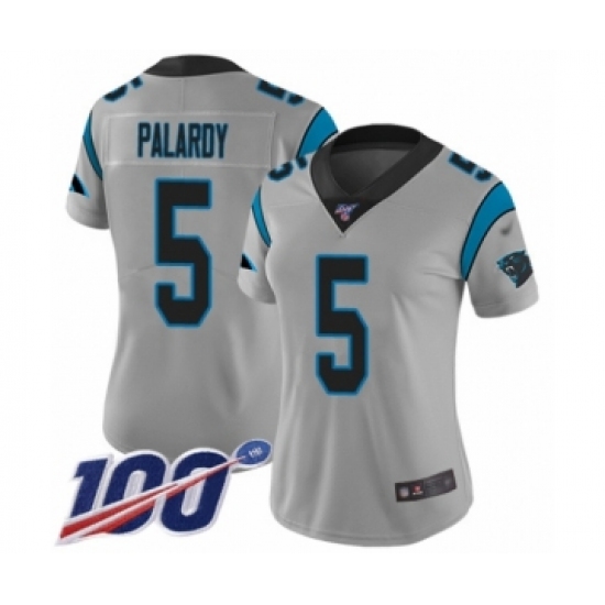 >Women's Carolina Panthers #5 Michael Palardy Silver Inverted Legend Limited 100th Season Football Jersey