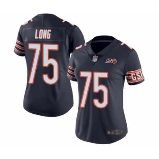 Women's Chicago Bears #75 Kyle Long Navy Blue Team Color 100th Season Limited Football Jersey