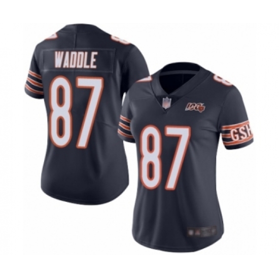 Women's Chicago Bears #87 Tom Waddle Navy Blue Team Color 100th Season Limited Football Jersey