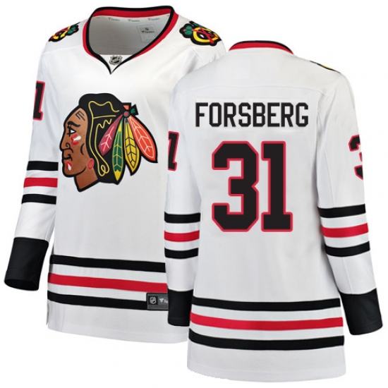 Home>NHL>Chicago Blackhawks>Anton Forsberg>Women's Chicago Blackhawks #31 Anton Forsberg Authentic White Away Fanatics Branded Breakaway NHL Jersey