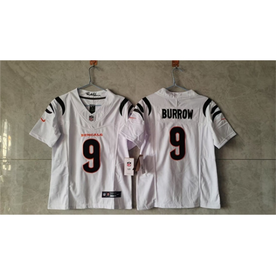 >Women's Cincinnati Bengals #9 Joe Burrow White F.U.S.E. Vapor Football Stitched Jersey(Run Small)