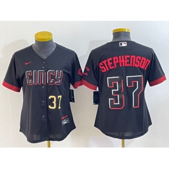 Women's Cincinnati Reds #37 Tyler Stephenson Number Black 2023 City Connect Cool Base Stitched Jersey1