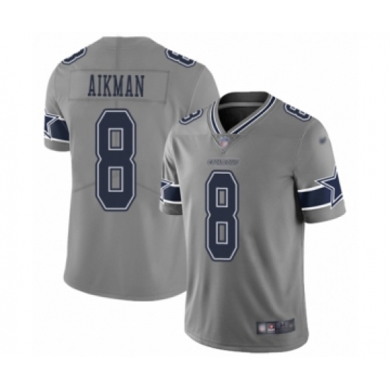 Women's Dallas Cowboys #8 Troy Aikman Limited Gray Inverted Legend Football Jersey