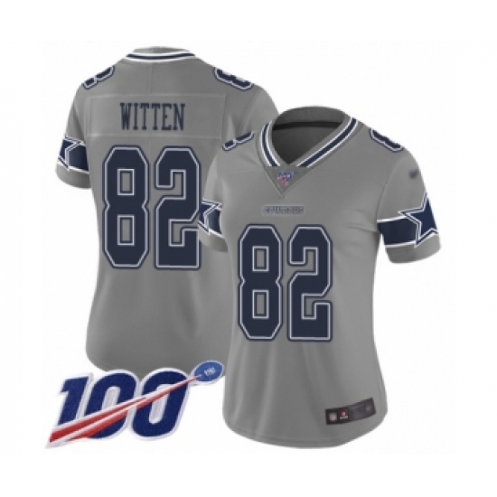 >Women's Dallas Cowboys #82 Jason Witten Limited Gray Inverted Legend 100th Season Football Jersey