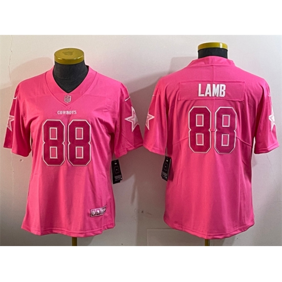 >Women's Dallas Cowboys #88 CeeDee Lamb Pink Vapor Untouchable Limited Stitched Football Jersey(Run Small)