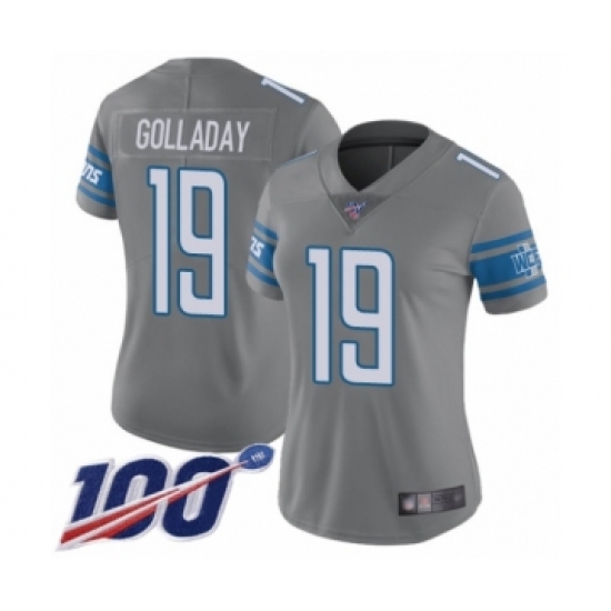 >Women's Detroit Lions #19 Kenny Golladay Limited Steel Rush Vapor Untouchable 100th Season Football Jersey