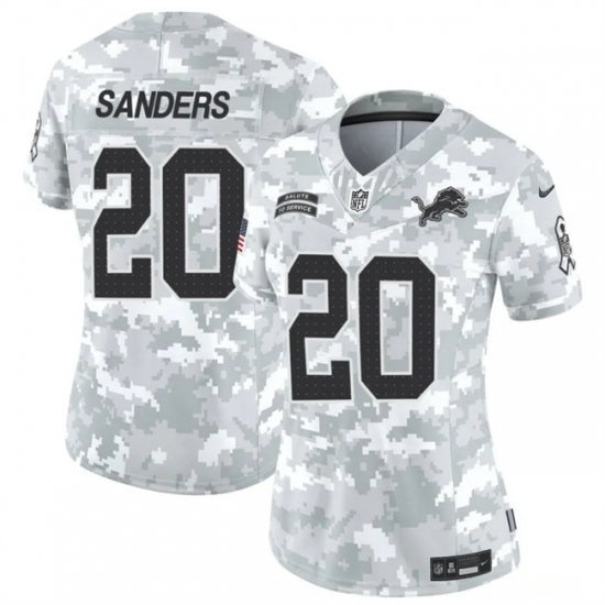 >Women's Detroit Lions #20 Barry Sanders 2024 F.U.S.E Arctic Camo Salute To Service Limited Stitched Jersey(Run Small)