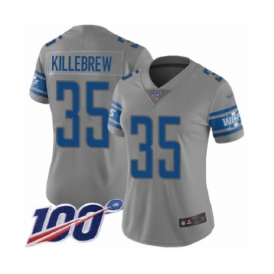 >Women's Detroit Lions #35 Miles Killebrew Limited Gray Inverted Legend 100th Season Football Jersey
