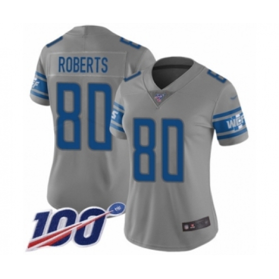 Women's Detroit Lions #80 Michael Roberts Limited Gray Inverted Legend 100th Season Football Jersey