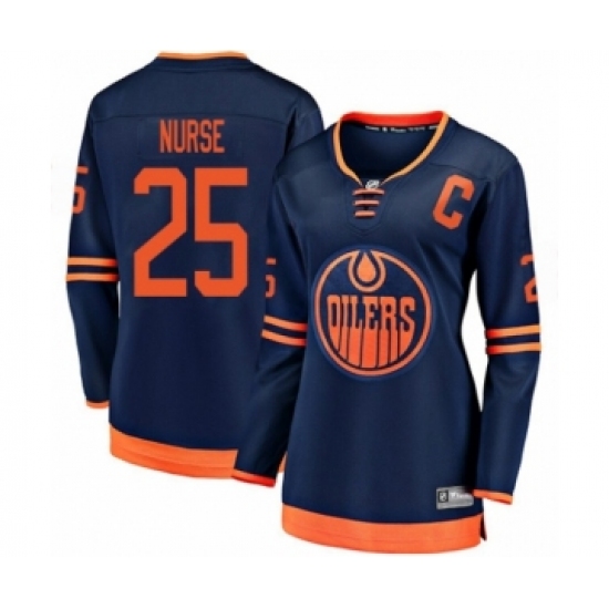 Women's Edmonton Oilers #25 Darnell Nurse Authentic Navy Blue Alternate Fanatics Branded Breakaway Hockey Jersey