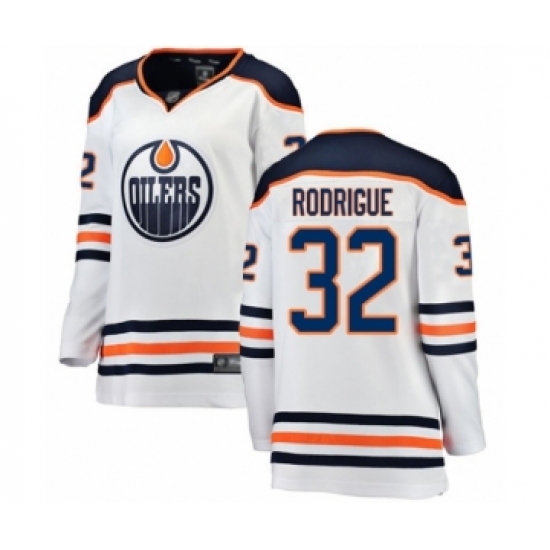 >Women's Edmonton Oilers #32 Olivier Rodrigue Authentic White Away Fanatics Branded Breakaway Hockey Jersey