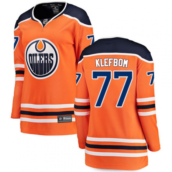 Home>NHL>Edmonton Oilers>Oscar Klefbom>Women's Edmonton Oilers #77 Oscar Klefbom Fanatics Branded Orange Home Breakaway NHL Jersey