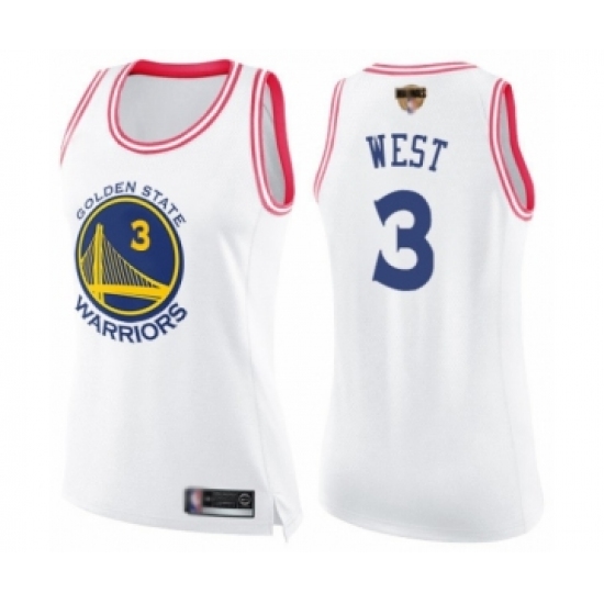 Women's Golden State Warriors #3 David West Swingman White Pink Fashion 2019 Basketball Finals Bound Basketball Jersey