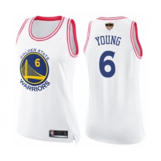 Women's Golden State Warriors #6 Nick Young Swingman White Pink Fashion 2019 Basketball Finals Bound Basketball Jersey