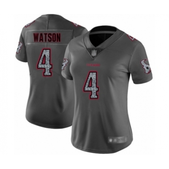 >Women's Houston Texans #4 Deshaun Watson Limited Gray Static Fashion Football Jersey