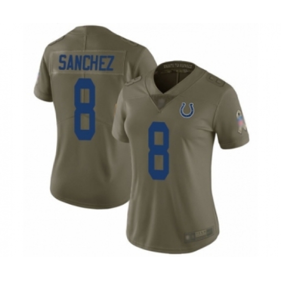>Women's Indianapolis Colts #8 Rigoberto Sanchez Limited Olive 2017 Salute to Service Football Jersey